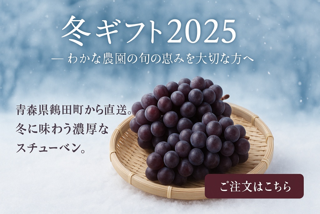 わかな農園が大切に育てたスチューベンを、贈答用に美しく詰めてお届けします。冬のご挨拶やお歳暮、記念日の贈り物に最適です。